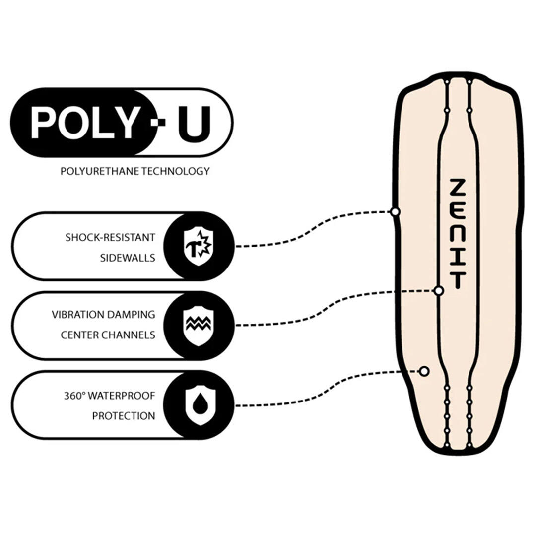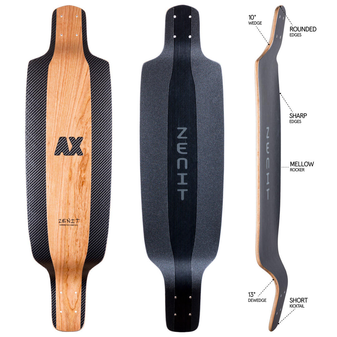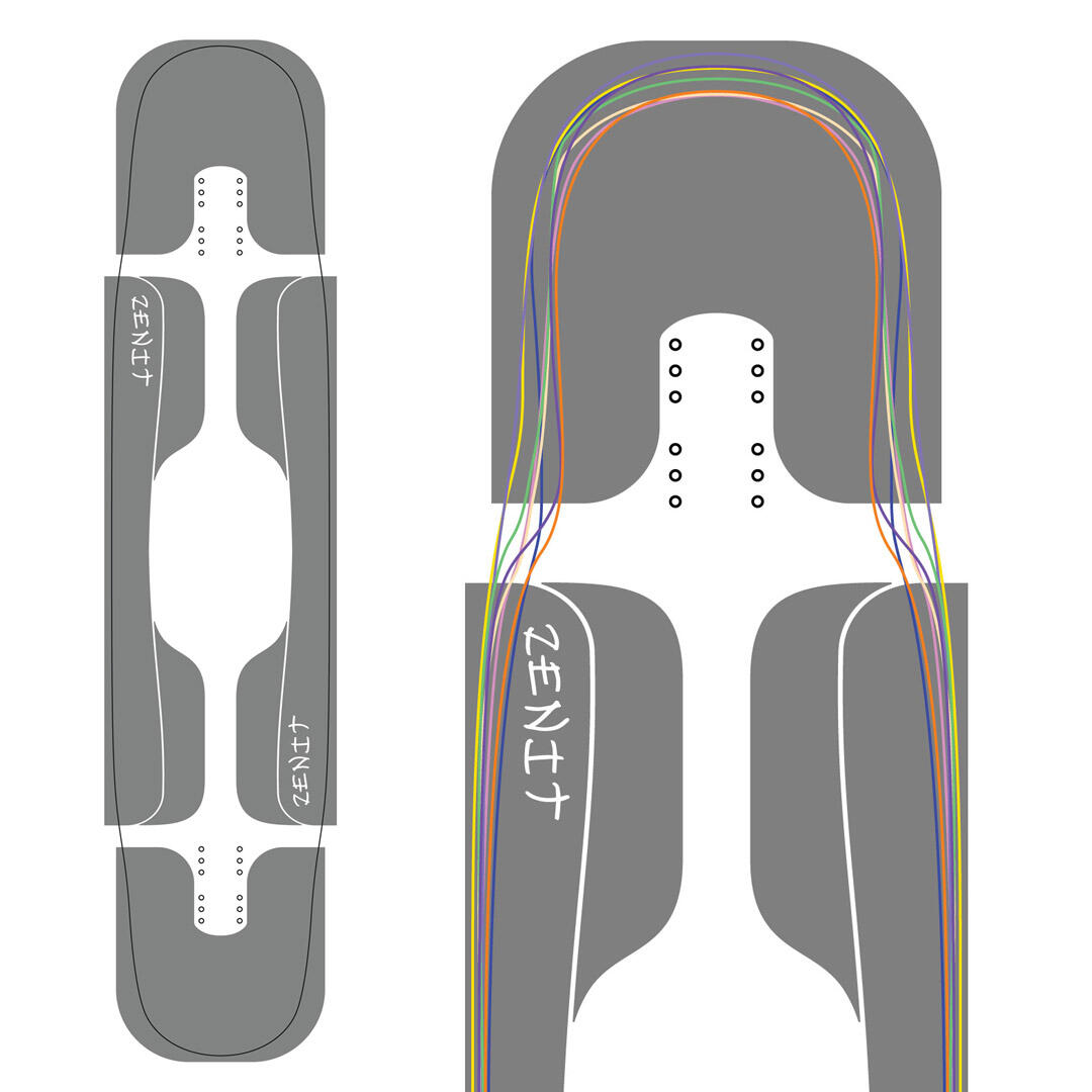 Les adeptes de « long distance push » (LDP) sont à la recherche de produits innovants qui peuvent améliorer leurs performances. Une popularité grandissante se fait sentir pour les planches permettant l'ajout de supports (brackets).Après plusieurs années de prototypage avec le polyuréthane et les noyaux en peuplier, l'entreprise Zenit était enfin prête à intégrer ces matériaux dans la production d'une planche de LDP.Ce type de construction offre une imperméabilité, une grande légèreté, ainsi qu'une résistance aux impacts et aux vibrations de la route. Ces caractéristiques répondent parfaitement aux besoins des adeptes de LDP.