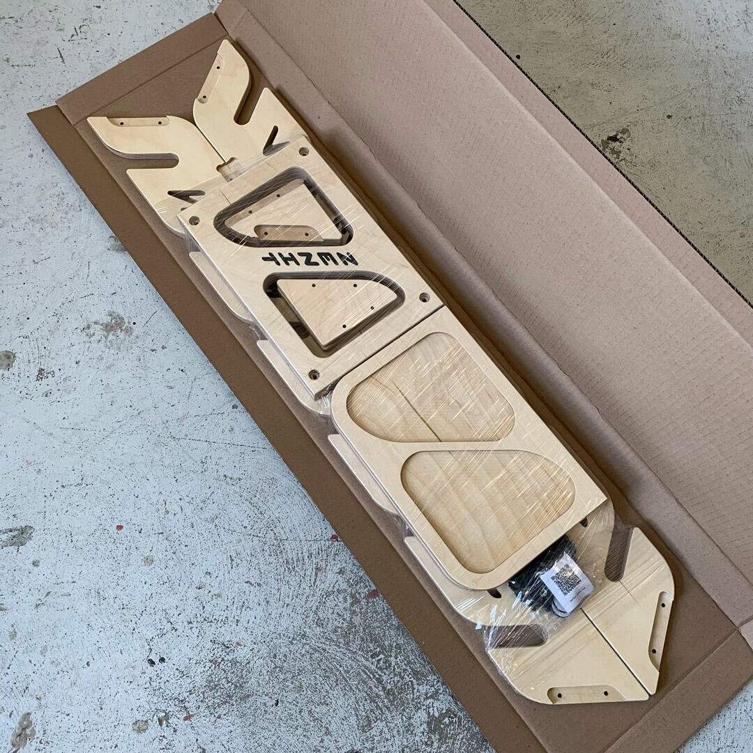Les Board Racks sont livrés en pièces détachées pour réduire les frais de livraison et l'espace de stockage en magasin.L'entreprise s'approvisionne en boîtes de carton de dimensions standard pour l'expédition des planches à roulettes.Les dimensions des pièces sont ajustées pour être compatibles avec ces boîtes, ce qui permet un emballage économique du produit.