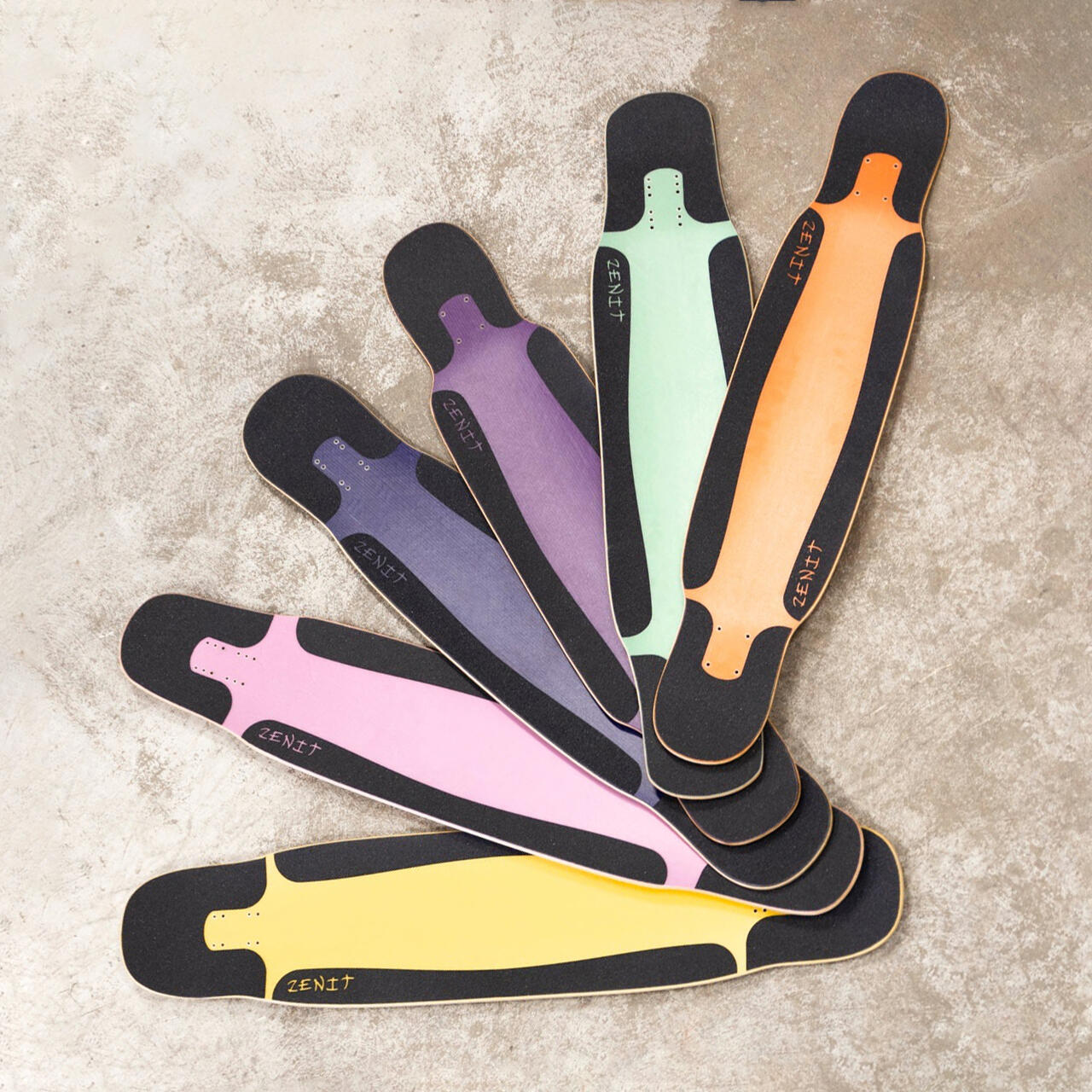 Les adeptes du « long distance push » (LDP) en longboard se tournent vers des produits clé-en-main avant d'investir dans des équipements plus avancés.Ce type de planche est basse au sol et possède des angles aux extrémités qui permettent une plus grande réactivité à l'avant et plus de stabilité à l'arrière, ce qui facilite son utilisation sur les longues distances.L'entreprise Zenit souhaite ajouter un modèle de ce type à sa gamme de produits en rappelant l'esthétique de son tout premier modèle.